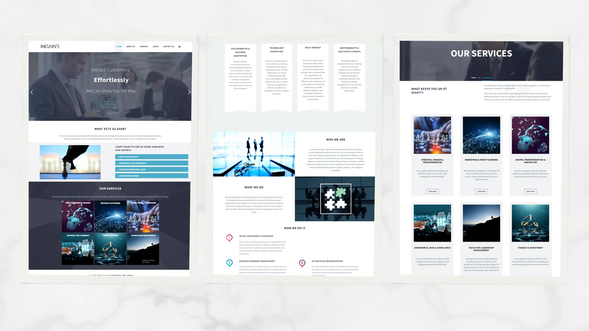 Incuvate’s website by WzTechno serves as a professional hub for startups, investors, and entrepreneurs. It highlights incubation programs, mentorship, and business development services through a modern, interactive interface. The site’s clean design reflects innovation, growth, and collaboration.