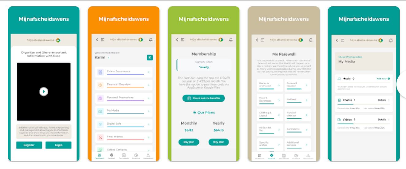 WzTechno developed the Erfdelen app—a secure and intuitive mobile solution designed to help users organise, protect and share their most important personal information, from social-media and banking credentials to estate planning and account access. Built with Flutter for both iOS and Android, the app features a sleek, responsive design and user-friendly interface that ensures seamless performance across devices, empowering users to safeguard critical data and share it with loved ones with ease.